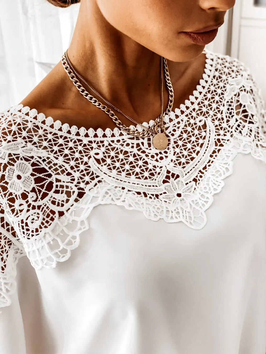 חולצת מעצבים עם שרוולי תחרה רחבים. החלק העליון והאלגנטי עשוי מבד איכותי וזורם שמתעטף יפה על הגוף. העיצוב הייחודי כולל שרוולים רחבים ותחרה בחלק העליון, היוצרים מראה נשי ומתוחכם. מושלם לכל אירוע! החולצה תרים את המלתחה שלך ותשתדרג כל אאוטפיט. אל תפספסי את הדגם המיוחד.