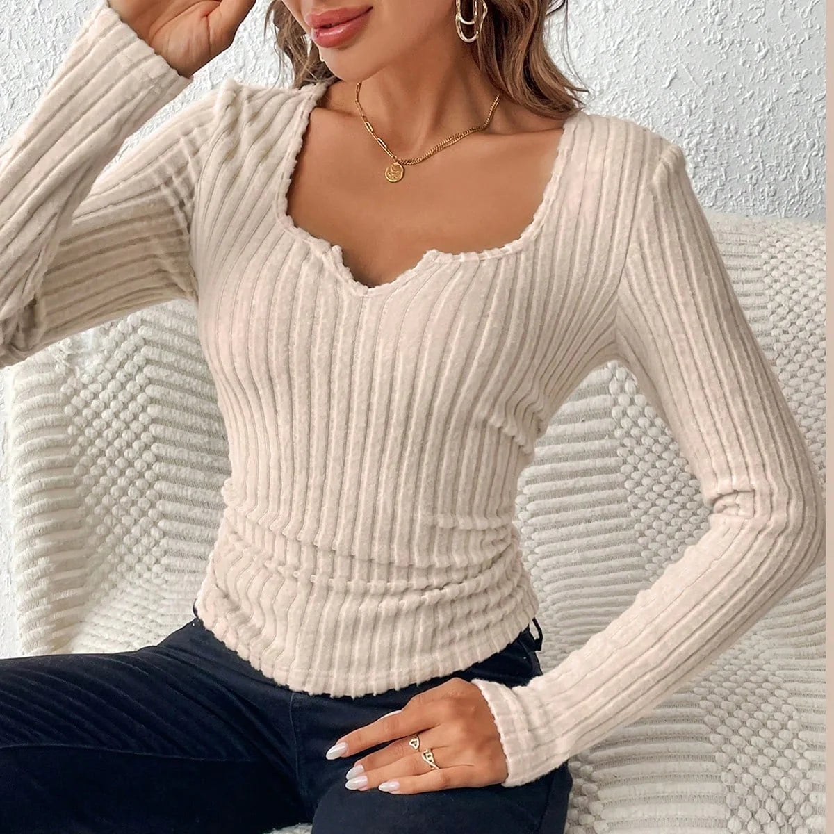 חולצת berl בשילוב צווארון וי חד. בעיצוב נקי סגנון קליל, המדגיש את הגזרה שלך.