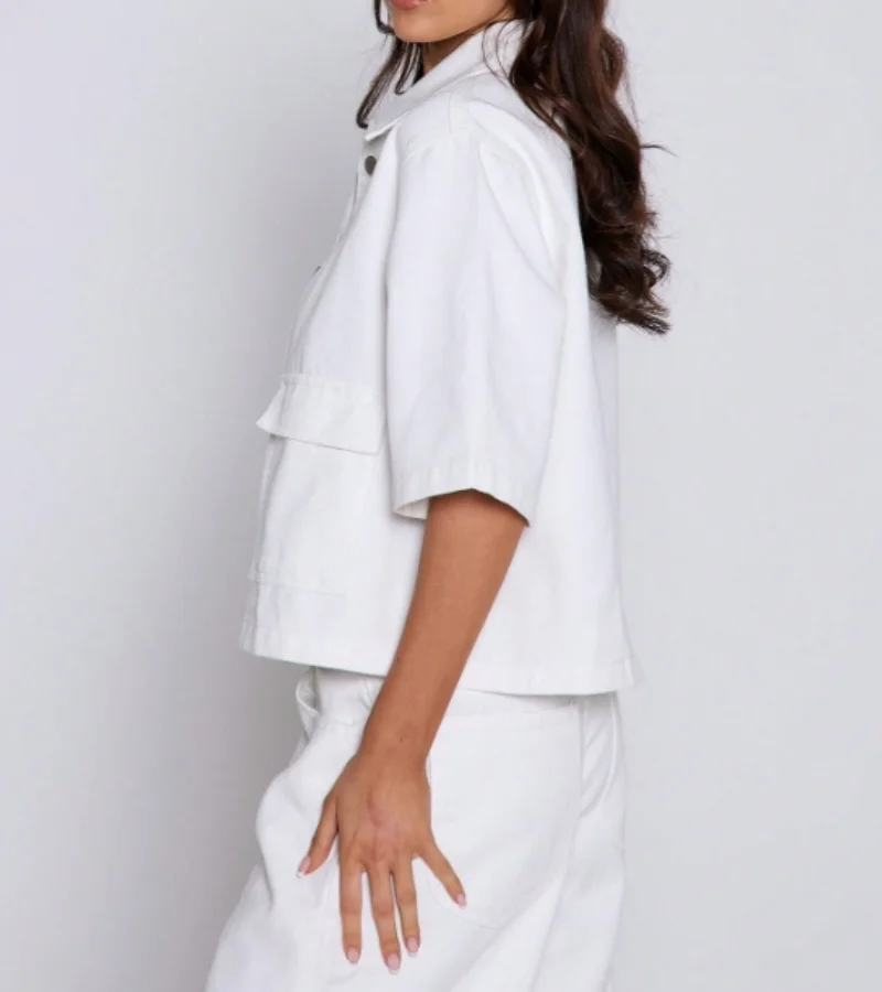 ג'קט ג'ינס קצר בגזרה רפויה עם שרוולים עד המרפק ועיצוב נקי וקלאסי. מתאים ללוק יומיומי קליל באביב ובקיץ.