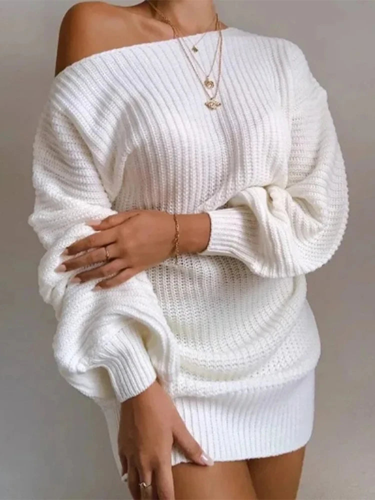 שמלת מיני סריג קז'ואלית לעונות הסתיו והחורף. בשרוולים ארוכים בגזרת בלון מתרחבת, השמלה מציעה סטייל נוח וכיפי.