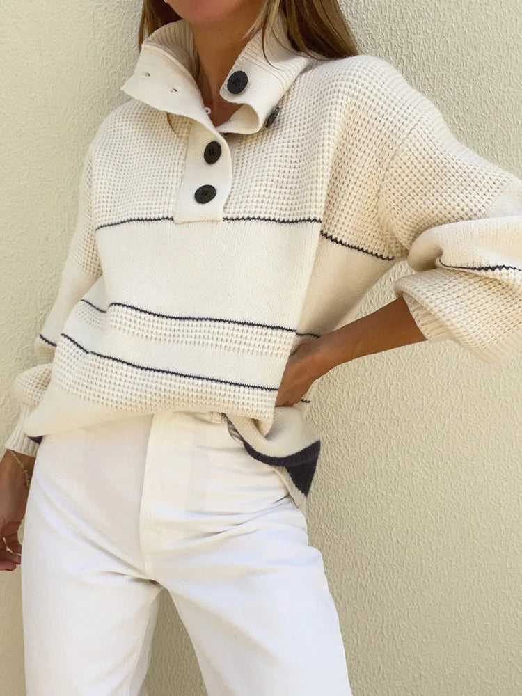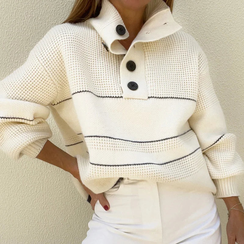 הסוודר בעל פסים צבעוניים ומרקם סרוג שמביא שילוב של צבעים מגוונים וטרנדיים.